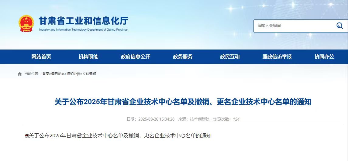 近日,甘肅省工業(yè)和信息化廳發(fā)布《關(guān)于公布2025年甘肅省企業(yè)技術(shù)中心名單及撤銷、更名企業(yè)技術(shù)中心名單的通知》。我公司被甘肅省工業(yè)和信息化廳、甘肅省發(fā)展和改革委員會、甘肅省科學(xué)技術(shù)廳、甘肅省財政廳、國家稅務(wù)總局甘肅省稅務(wù)局聯(lián)合認定為2025年甘肅省企業(yè)技術(shù)中心。這一認定標志著我公司在技術(shù)創(chuàng)新體系建設(shè)、核心技術(shù)研發(fā)及成果轉(zhuǎn)化能力等方面獲得省級權(quán)威認可,躋身全省同行業(yè)技術(shù)創(chuàng)新先進行列。
